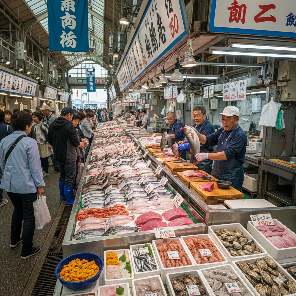 3. 신선한 해산물의 보고: 직판장과 굴 오두막 (カキ小屋) 이토시마의 미식 경험은 단순히 식당 방문에 그치지 않고, 신선한 재료를 직접 접하는 체험으로 확장됩니다.
